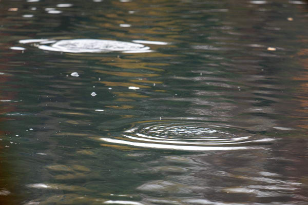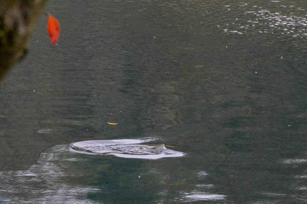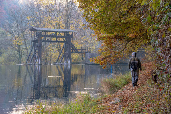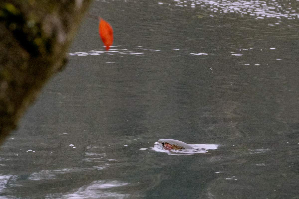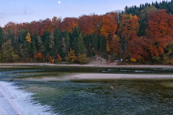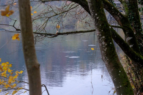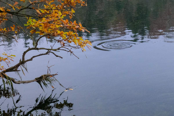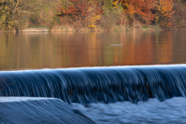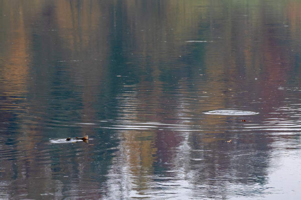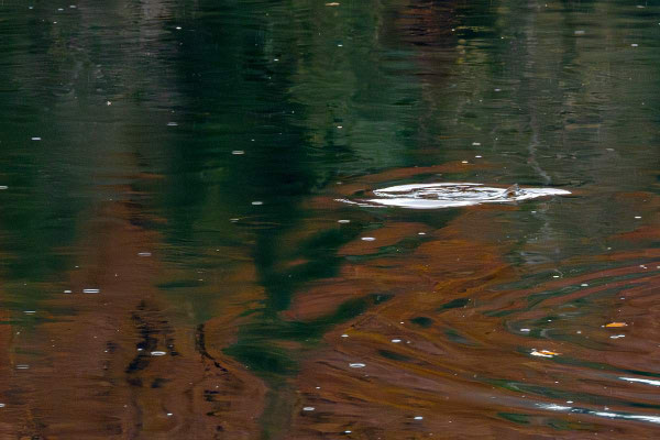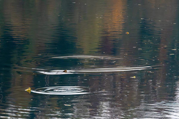 Jetzt, Anfang November, bin ich wieder unterwegs, am „Ewigsteigerplatz“, auf der Suche nach eventueller Oberflächenaktivität – und ich hatte Glück. Es waren viele Ringe entlang der Hauptströmung zu sehen. Nicht etwa, wie üblich, knapp vor dem Schleuseneinlass. Diesmal verrieten die Fische ihre Anwesenheit weiter oben im Bereich des „Bankerls“. Und sogar bis zum Kanalsteg hinauf war reges Steiggeschehen zu beobachten.