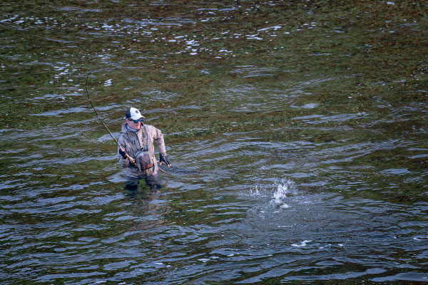Wenn das alles keinen Erfolg bringt, man muss ja den Steigrhythmus genau treffen, bietet sich nur mehr eine gezogene, kleine Nassfliege an. Das Katz-und-Maus-Spiel funktioniert immer.